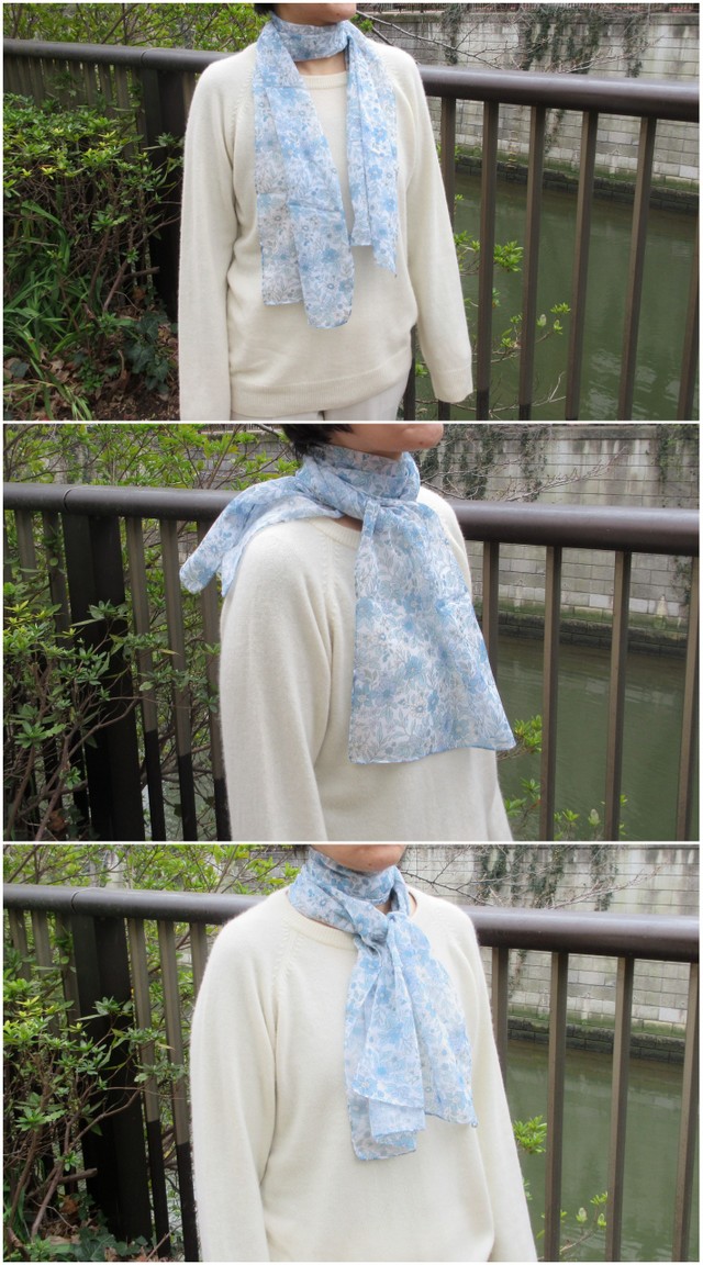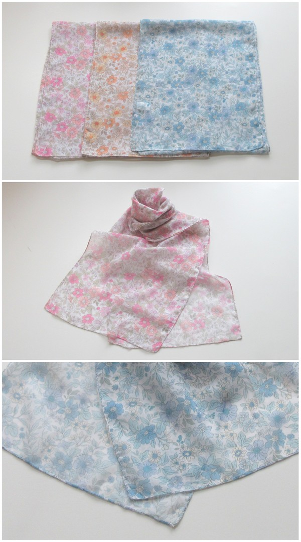 春夏・真夏には首にスカーフを巻く事で、紫外線対策、UVカット対策になります。春夏には手軽に手洗いできる、洗える素材は重宝しますね。すぐに洗えてすぐに乾きます。
