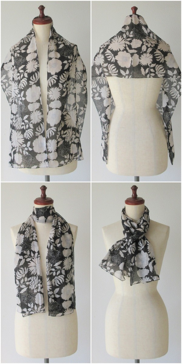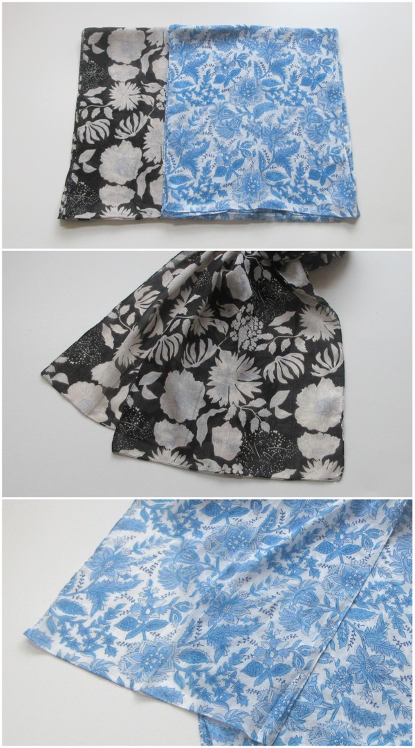 25年の春夏の新柄ストール、コットン100%の花柄ストール、綿スカーフ。