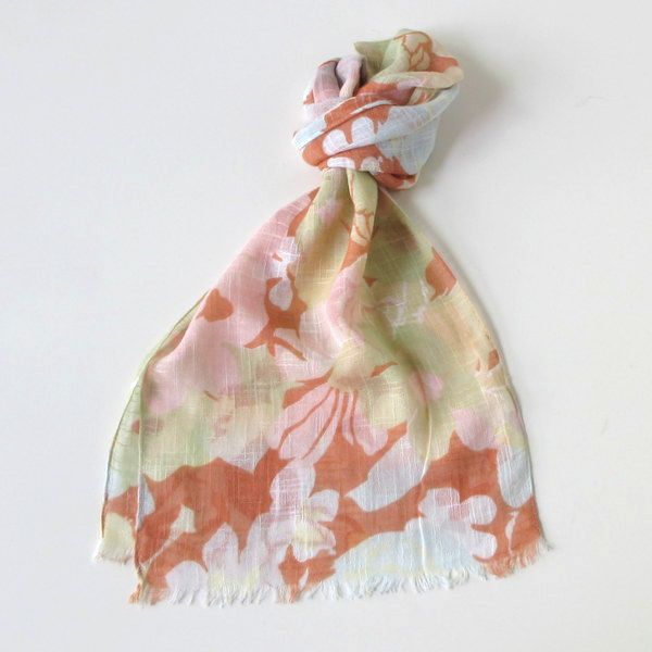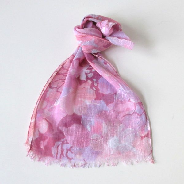 ガーゼ地・花柄の綿ストール。サイズは、30センチ×160センチの小さめサイズ。