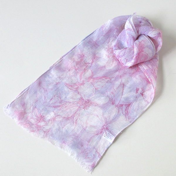 春・夏・秋の汗をかく季節は、手軽に手洗いできる、洗える素材は重宝しますね。花柄は、幅広い年代の方に愛されるモチーフです。お値段手頃価格で、誕生日や母の日のプレゼントに敬老の日のギフトにも最適なリネンストールです!