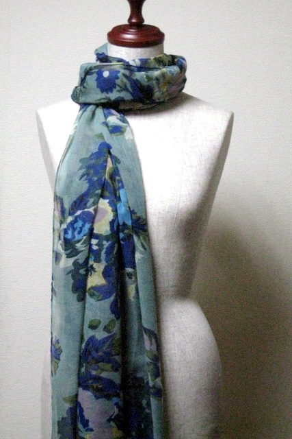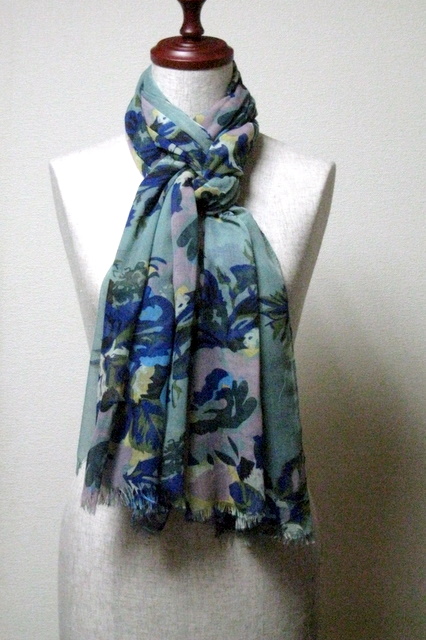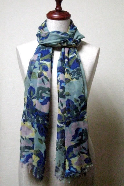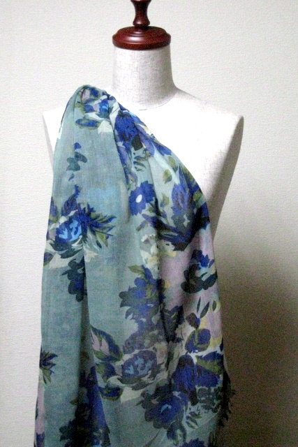 パリ(PARIS)直輸入の花柄ストール。春肌寒い時から、年間をとおして巻ける70CM幅の大判ストール。