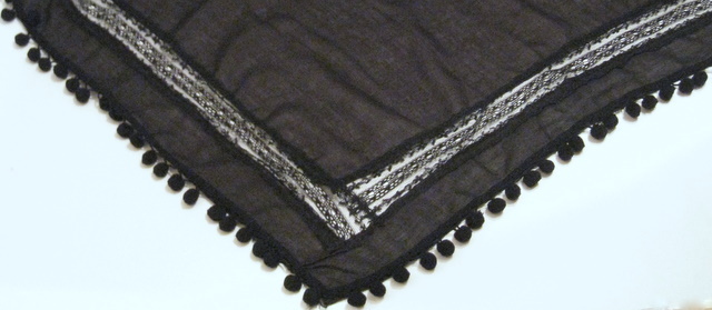 かわいいポンポンがぐるりとついて、幅広のレースもついたデザイン。