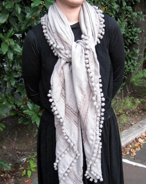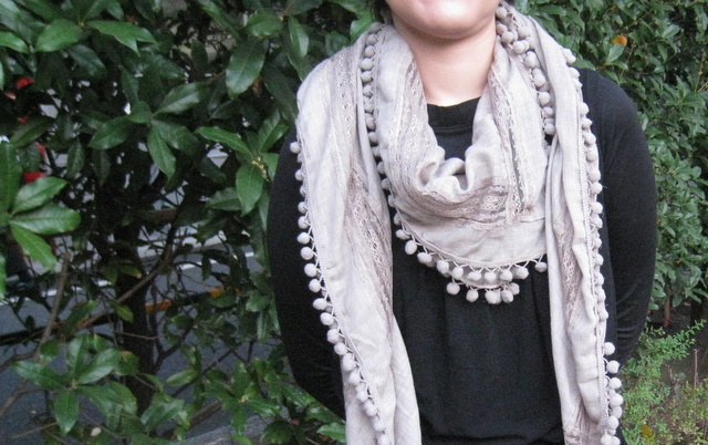 ストールの巻き方ひとつで様々な変化を楽しめる、1枚あるとオシャレ度がUPするポンポンストールです。