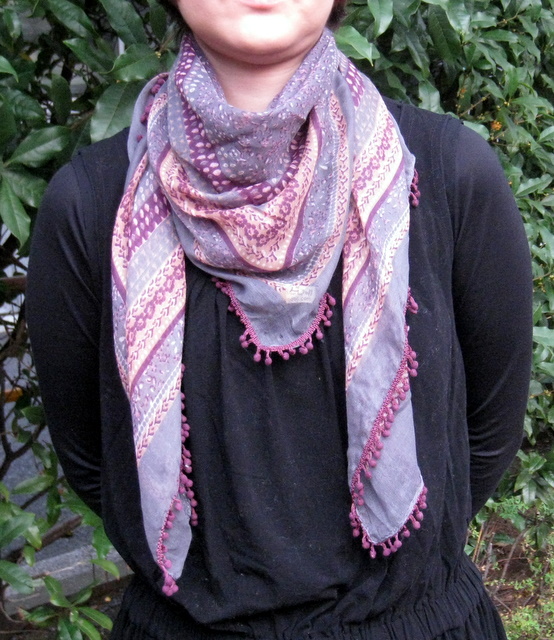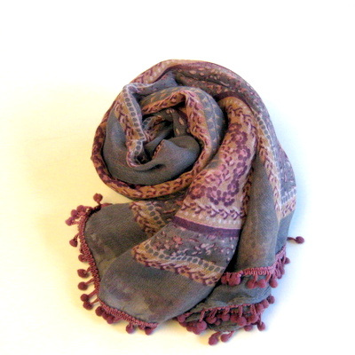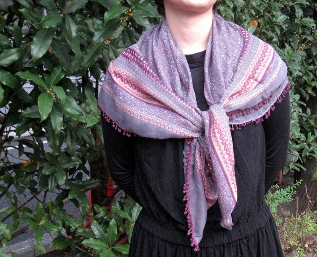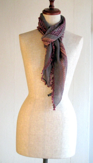 【Kiss Me Doll】ドット ポンポンスカーフ/水玉ポンポンストール/グレー・モーブ★メール便対応