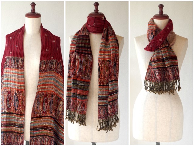 大人気のエスニック模様の大判ストール。特に多色使いのペイズリーは、大人気の柄です。