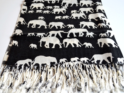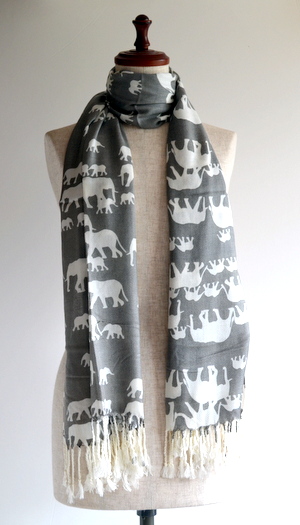 ありそうでないアニマル柄の象のストールは、巻くだけでアクセントになるパシュミナの風ショールです。