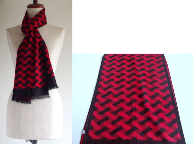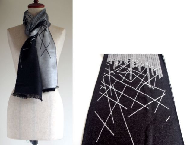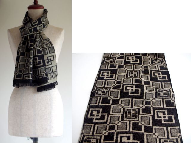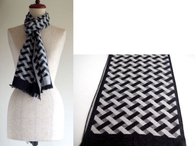 チェックやスクエァやラインの幾何学模様の知的なマフラーです。