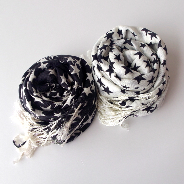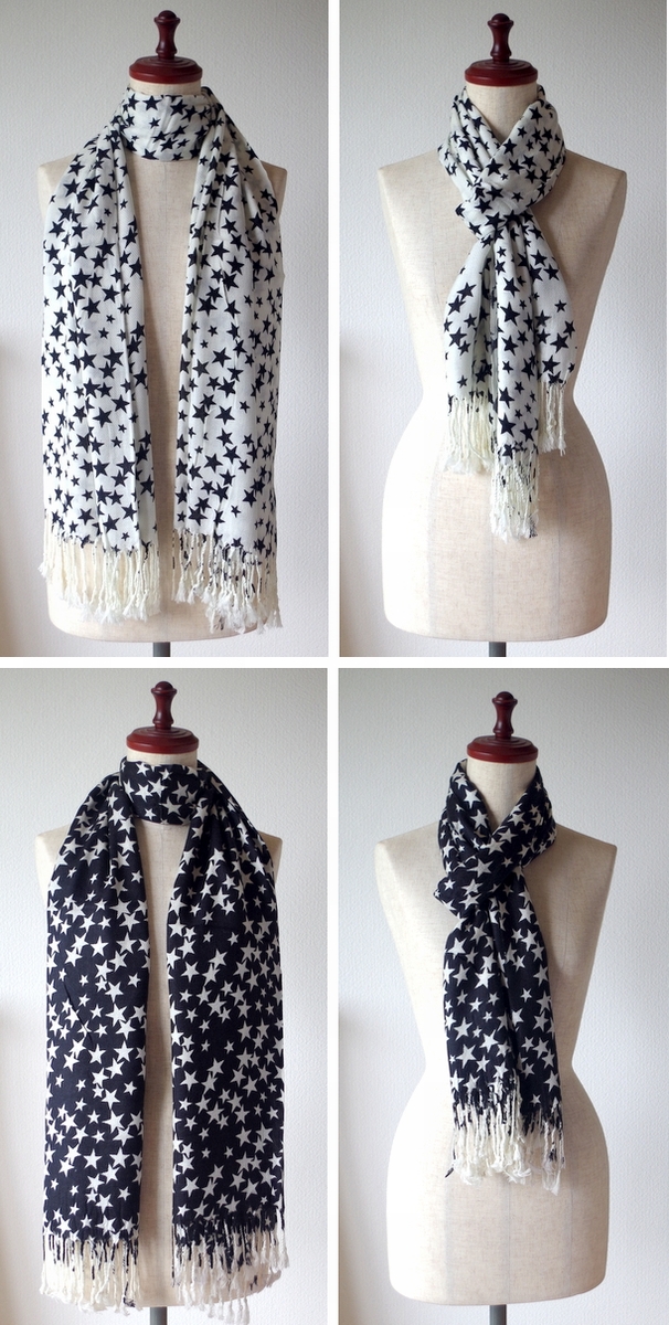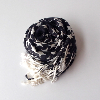 ありそうで、なかなかお目にかからないスター(星柄)の大判ストール。ベーシックでコンサバでありながら
