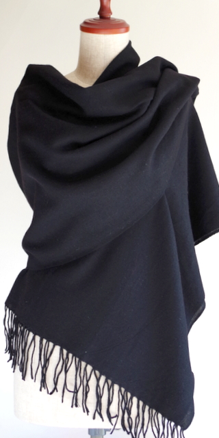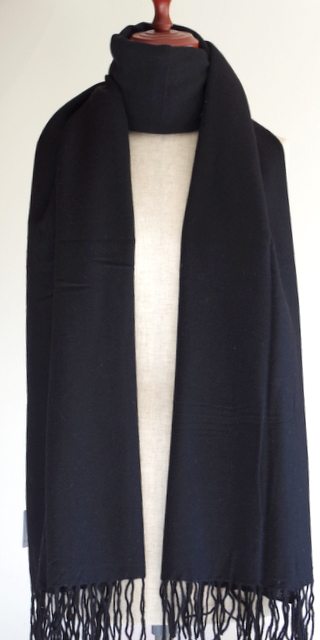 大定番ともいえる黒(ブラック)の厚手ストールです。柄物が得意なYARNZの中では珍しい無地ストール。