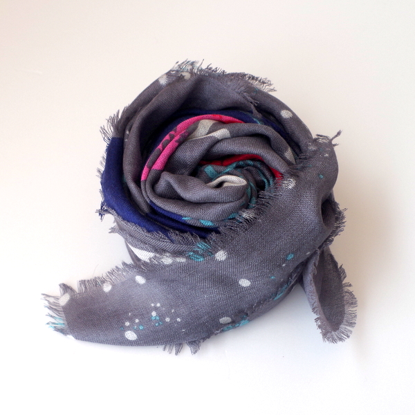 1枚あると便利な色合い、しかもYARNZらしいアイロニーが効いた大判スカーフはおすすめです!