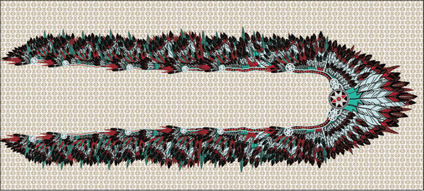 ストール中央部に大きなインディアンのヘッドドレスがターコイズとレッドで描かれています。