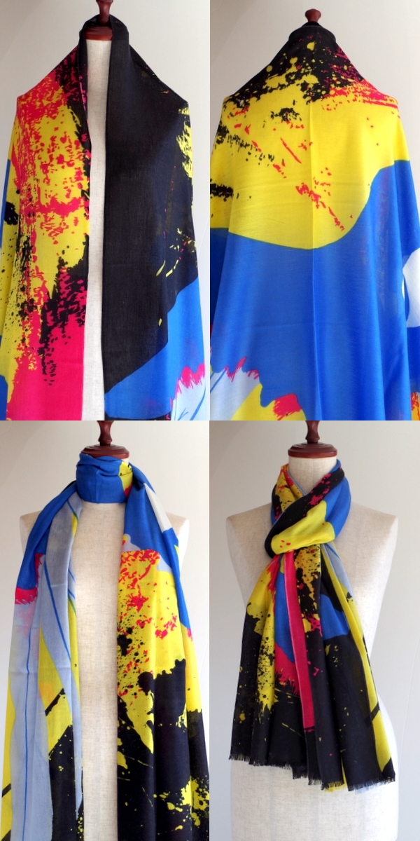 こちらの大判ストールは、Macaw【コンゴウインコ】と名付けられたカシミヤ・シルクストール。