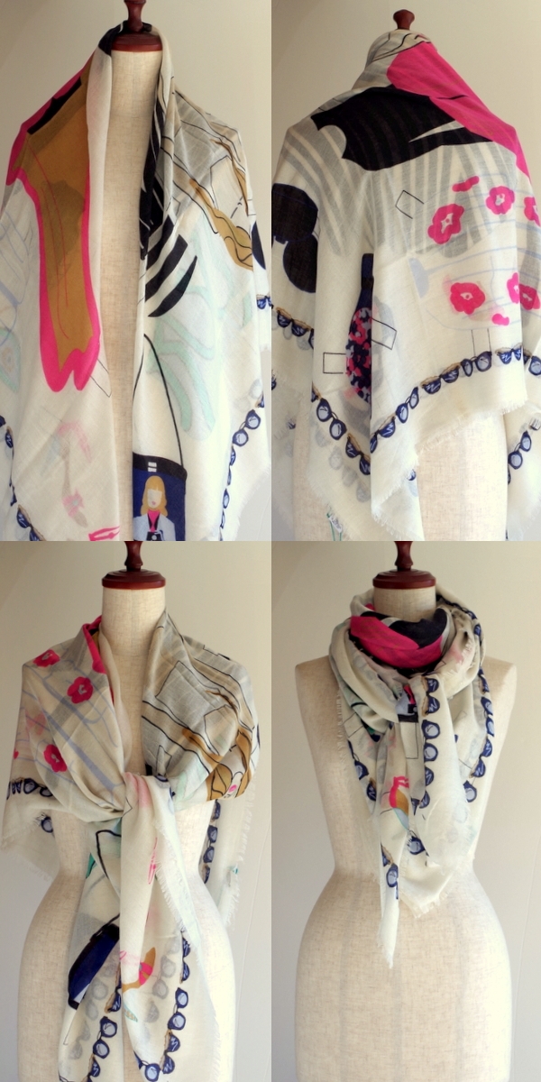 小さいころに遊んだ紙人形を思い出す懐かしのプリントのスカーフです。。