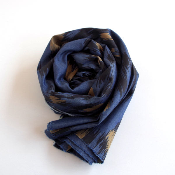 そんな見た感じとは、逆にさらりとした肌触りでなめらかな綿100%で、大人のカジュアルにふさわしいストール。